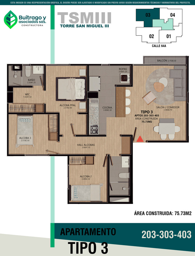 Torre San Miguel III hace parte de una línea de proyectos ya ejecutados por Constructora Buitrago y Asociados. Experiencia real en planeación, construcción y entrega.
