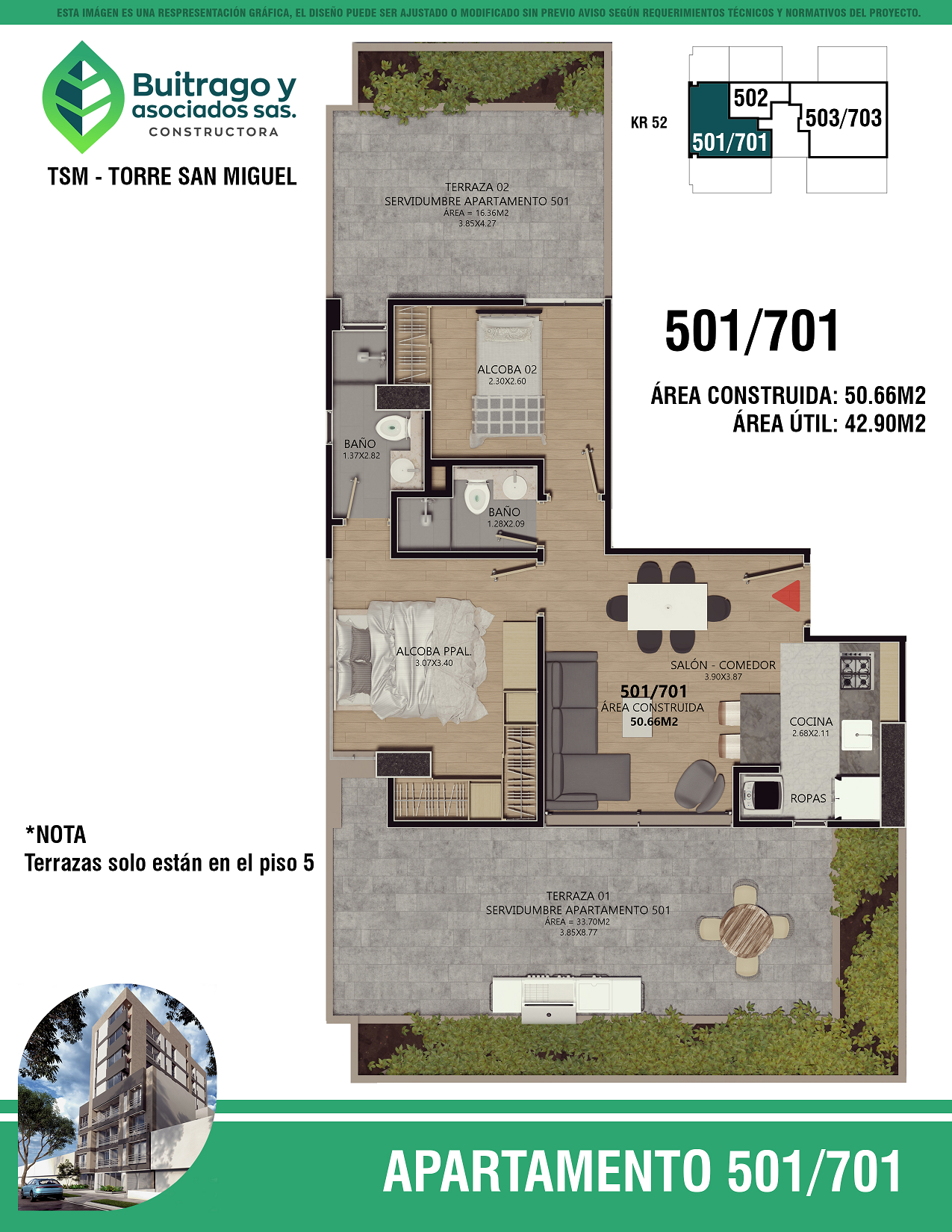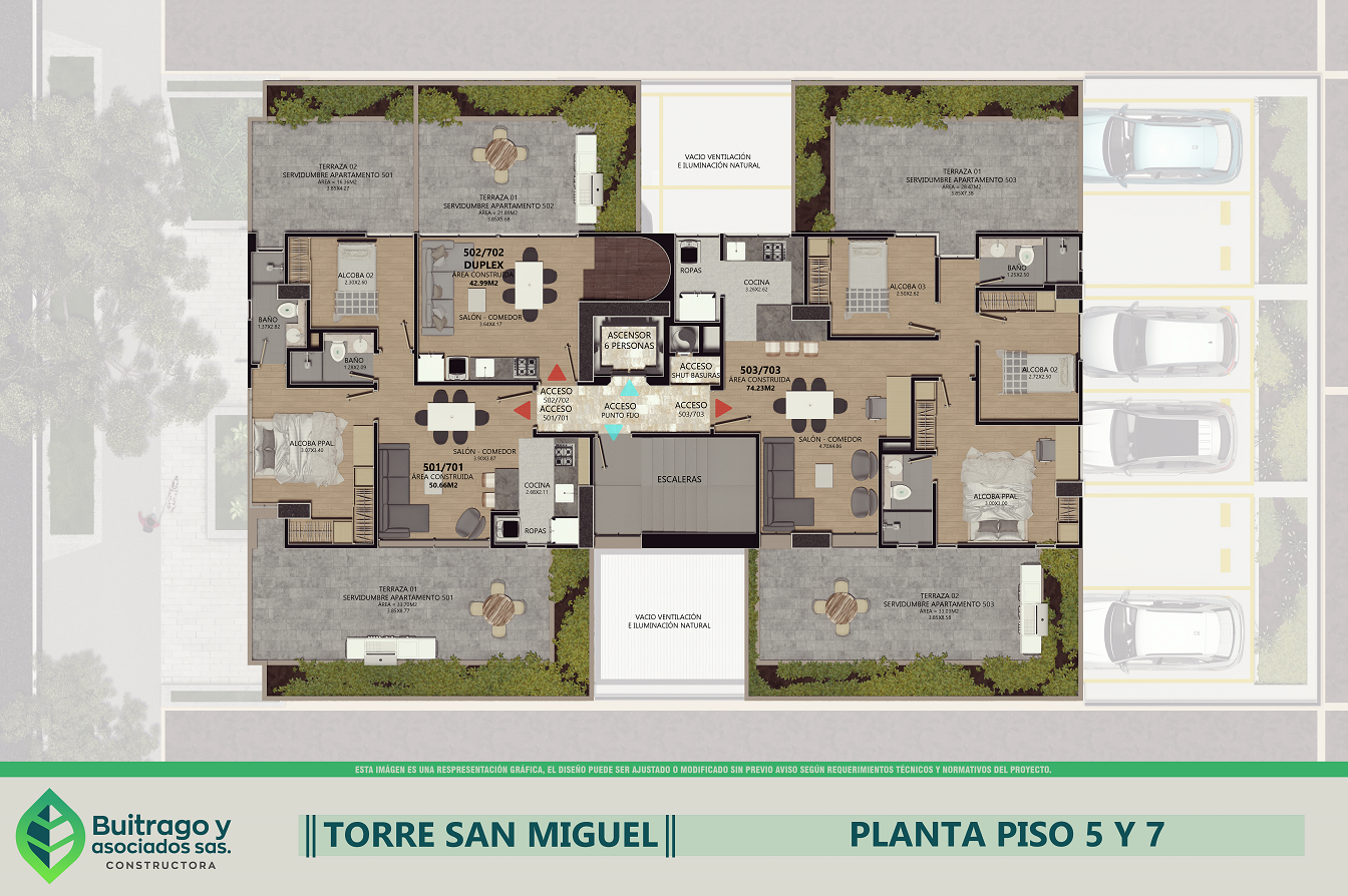 Estrato 4. Torre San Miguel contará con una torre de 22 apartamentos unidades con Sauna, Fogata, Terraza BBQ, Gimnasio, Recepción, Terraza Comunal, Sala de espera y Zonas verdes.