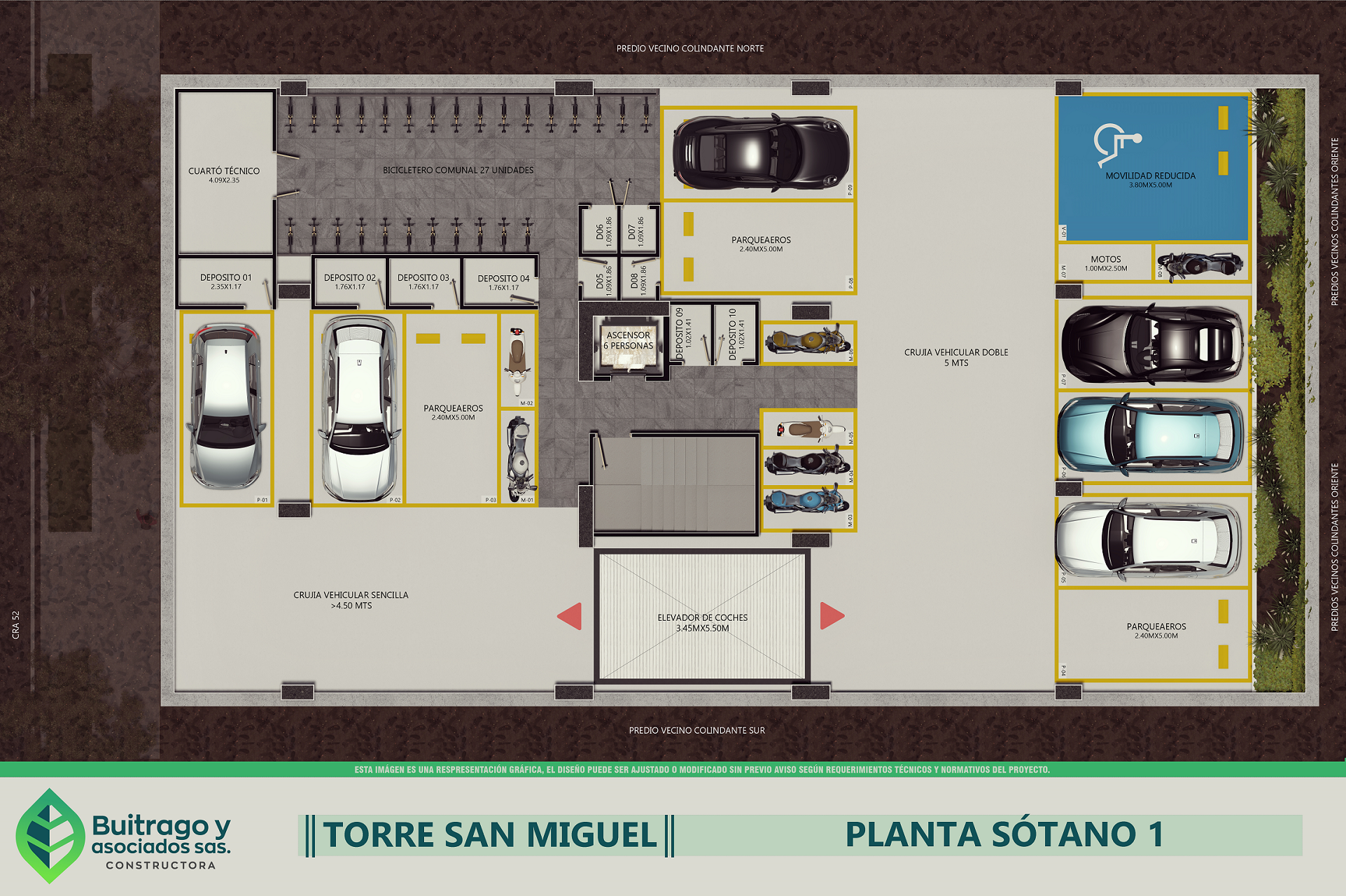 Torre San Miguel Cuenta con 22 apartamentos, parqueadero vehicular y moto, opción de bicicletero y deposito.